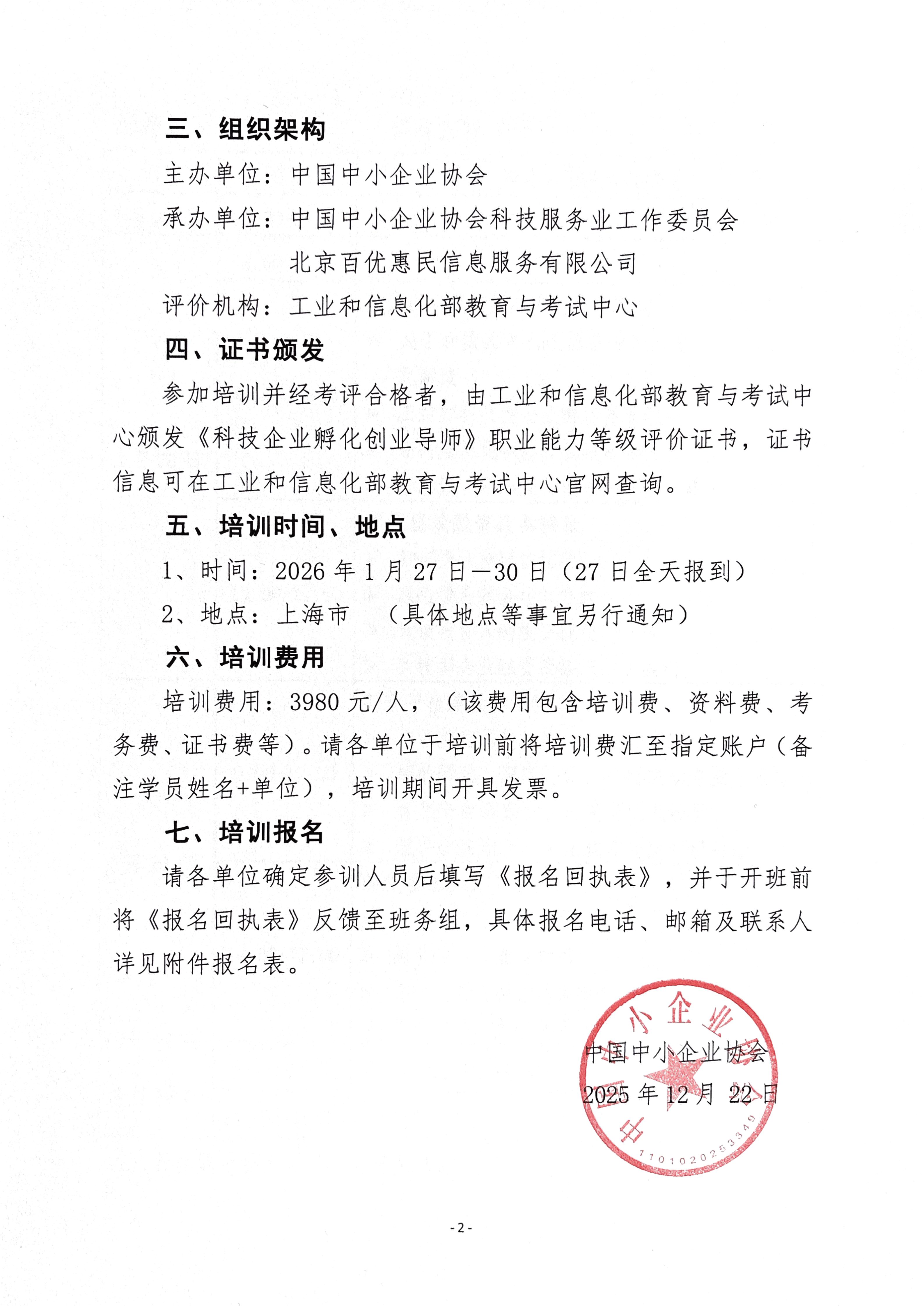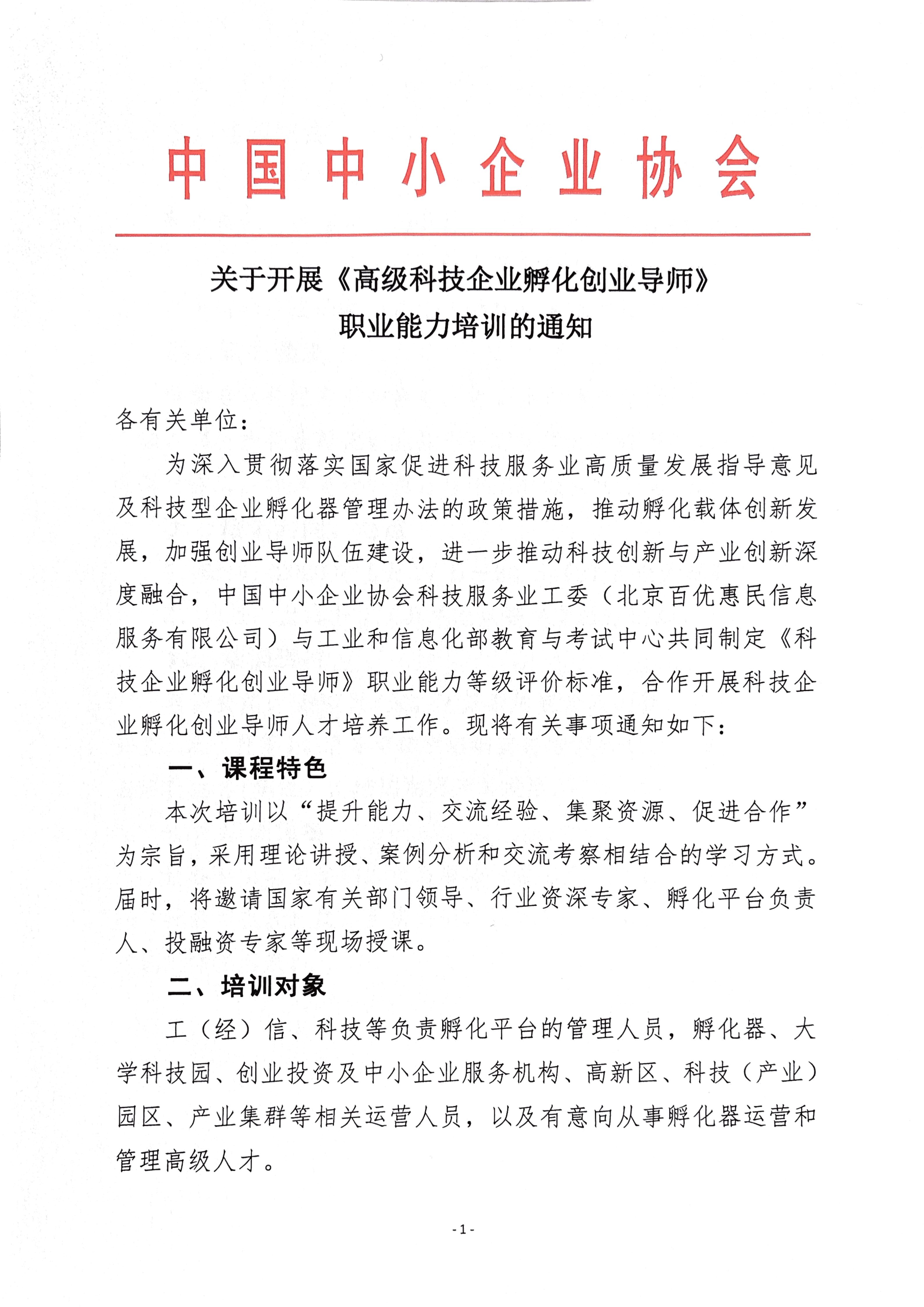 关于关于开展<<高级科技企业孵化创业导师>>职业能力培训的通知